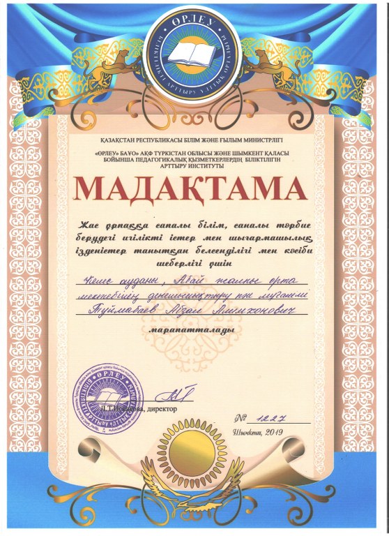 | 32 | Бакиров Айтбай Марапаттар оқушы Алғыс хат | |