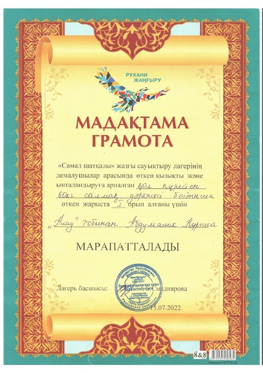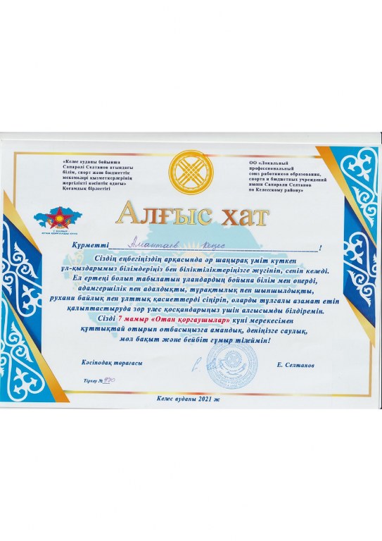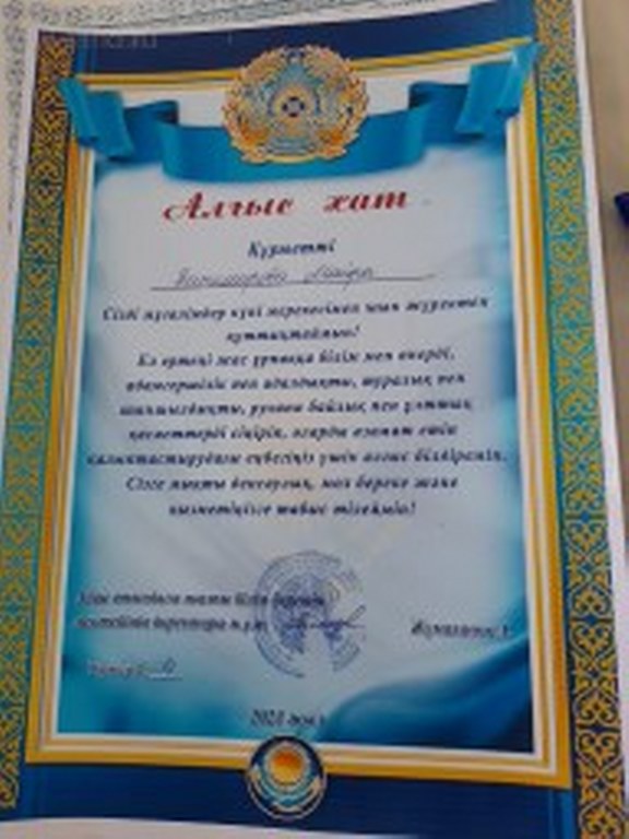 | 18 | Алғыс хат. Болашақ Рыскул.Айкөркем | |