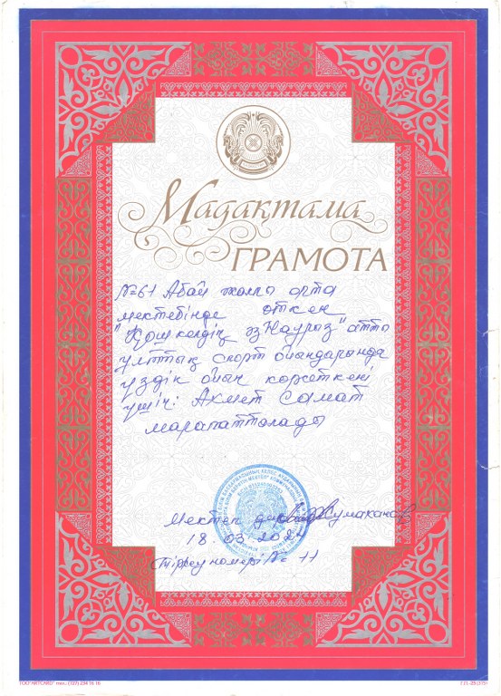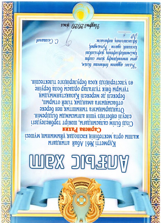 | 17 | Алғыс хат. Болашақ Рыскул. Алмас | |