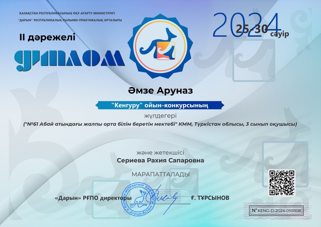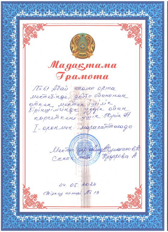 | 141 | Құрмет грамотасы.Абай оқулары Рыскул 2024ж | |